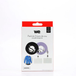 WE Pack 2 Tours de cou PAD UNIVERSEL: tour de cou noir + violet - 2 pads transparent - avec accroche - compatible toutes coques smartphones - réglable -amovible