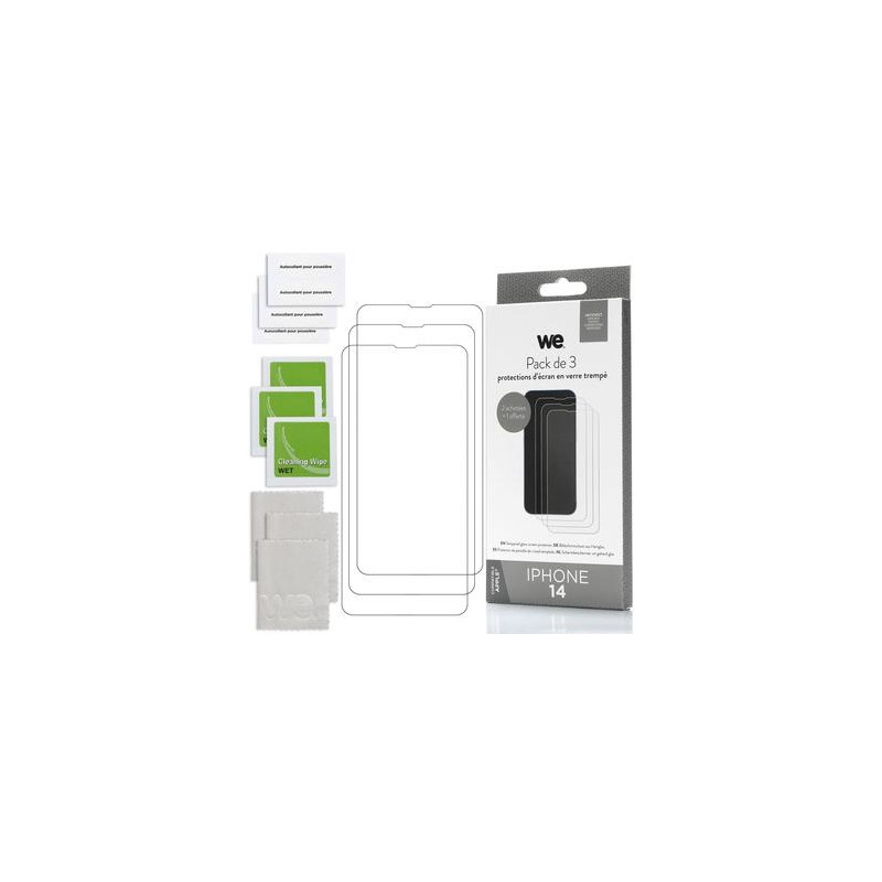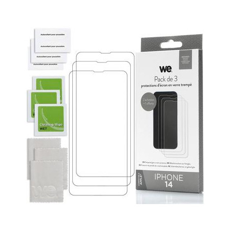 WE PACK 3 verres trempés IPHONE 14 : 3 Protections d'écran - anti-rayures - anti-bulles d'air - ultra-résistant - dureté 9H Glass