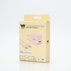 WE POP Pack Chargeur secteur + Câble USB-C/Lightning Rose :