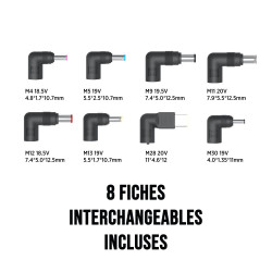 Ce chargeur universel WE est un adaptateur secteur doté d'une haute efficacité, il fonctionne de 110V à 240V (50/60Hz) et délivre une puissance de 90W. Grce à ses 8 connecteurs interchangeables inclus, ce chargeur est compatible avec la plupart des ordin