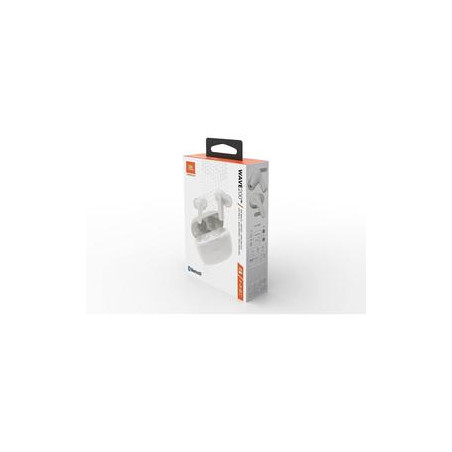 Compatibilité : IPX2 Dimensions : Universel Couleur : BLANC Contenu du pack : 1 paire d'écouteurs JBL Wave 200TWS + 3 tailles d'embouts (S, M, L) + Câble de recharge USB type C + 1 Etui de recharge+ 1 livret de garantie/avertissements (G/!) + 1 guide de